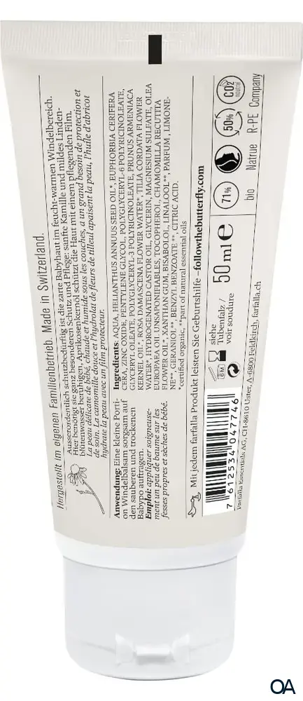 Der Farfalla Baby Kamille Windelbalsam mit Bio-Aprikosenkernöl beruhigt und pflegt empfindliche Babyhaut. Die sanfte Formel mit Kamille und Lindenblütenwasser schützt vor Rötungen und Feuchtigkeit. Ideal für natürliche Babypflege.Der Farfalla Baby Kamille Windelbalsam mit Bio-Aprikosenkernöl beruhigt und pflegt empfindliche Babyhaut. Die sanfte Formel mit Kamille und Lindenblütenwasser schützt vor Rötungen und Feuchtigkeit. Ideal für natürliche Babypflege.