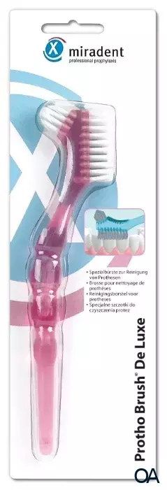Die Protho Brush De Luxe ist eine Prothesenzahnbürste mit ergonomisch geformtem Fingerform-Griff.Sorgfältige Mundhygiene ist auch für Prothesenträger wichtig. Speisereste, Bakterien und Beläge haften besonders gut an Prothesen und Halteelementen. Das führt zu Plaque, Zahnfleischerkrankungen und Schäden an den Kieferknochen. Es beeinträchtigt somit die Passform, den Tragekomfort der Prothesen und bringt unangenehmen Mundgeruch mit sich.