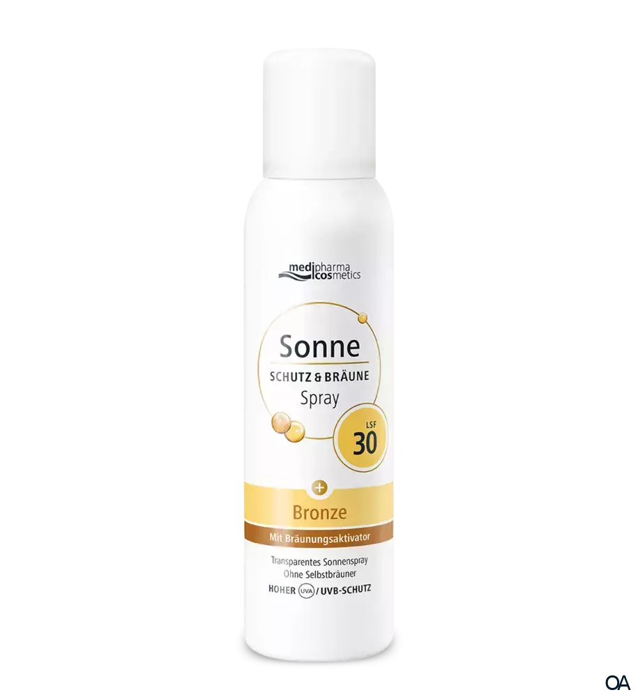 Der medipharma cosmetics Sonne Schutz & Bräune LSF 30 Bronze Aerosol-Spray ist ein ultraleichtes mit feinem Sprühnebel für Gesicht und Körper mit Pro-Melanin-Extrakt zur Intensivierung der natürlichen Bräune.