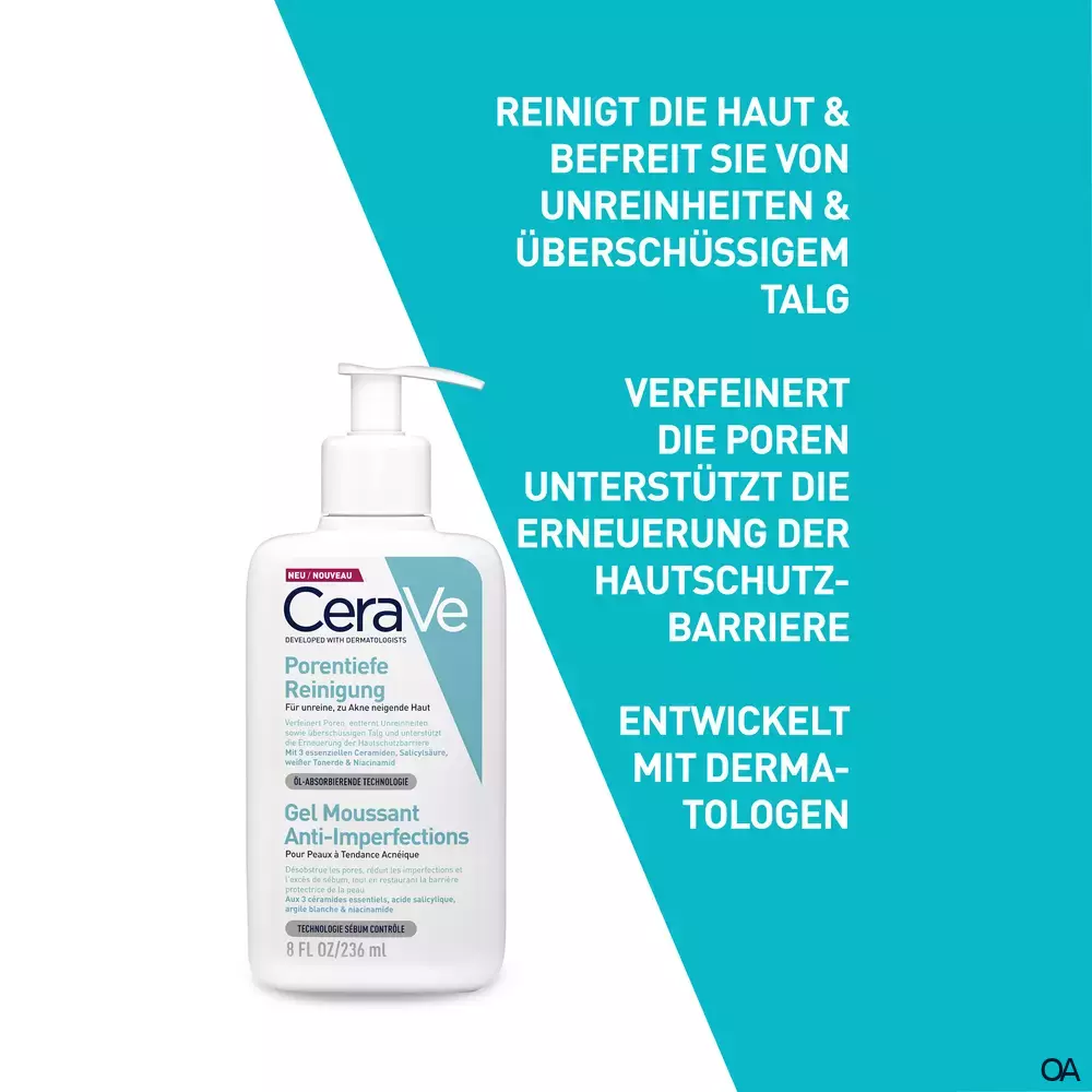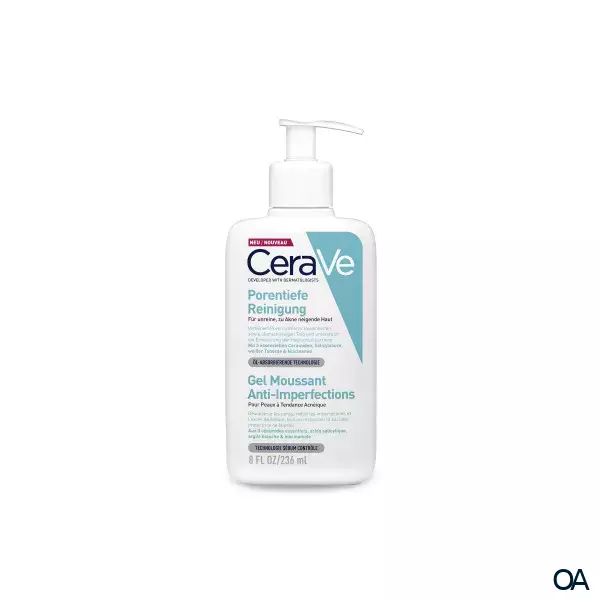 CeraVe Porentiefe Reinigung für empfindliche und zu Akne neigende Haut Die Porentiefe Reinigung von CeraVe befreit empfindliche Gesichtshaut sanft von überschüssigem Talg und wirkt Unreinheiten entgegen. Sie enthält Niacinamid und Salicylsäure, die abgestorbene Hautzellen entfernt und einer Verstopfung der Poren vorbeugt. Der Reinigungsschaum von CeraVe entfernt überschüssiges Öl durch den Reinigungsprozess und wurde speziell für fettige Haut entwickelt, die zu Unreinheiten und Akne neigt. Dabei entfernt die Reinigung überschüssigen Talg und trocknet die Haut nicht aus. Essenzielle Ceramide tragen zur Stärkung der Hautschutzbarriere bei.