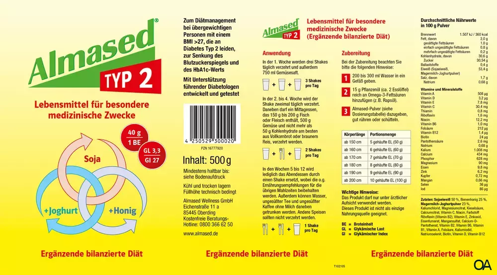 - Almased Typ 2 ist ein Lebensmittel speziell für besondere medizinische Zwecke. Eine ergänzende bilanzierte Diät zum Diätmanagement von Typ 2 Diabetikerinnen und Diabetikern mit einem Body Mass Index (BMI) über 27.