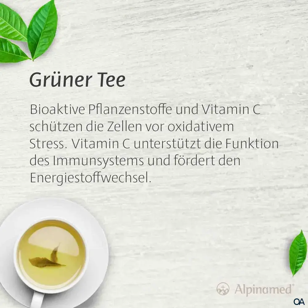 - Zum Schutz der Zellen vor oxidativem Stress: Grüner Tee ist reich an bioaktiven Substanzen und unterstützt gemeinsam mit Vitamin C beim Zellschutz.