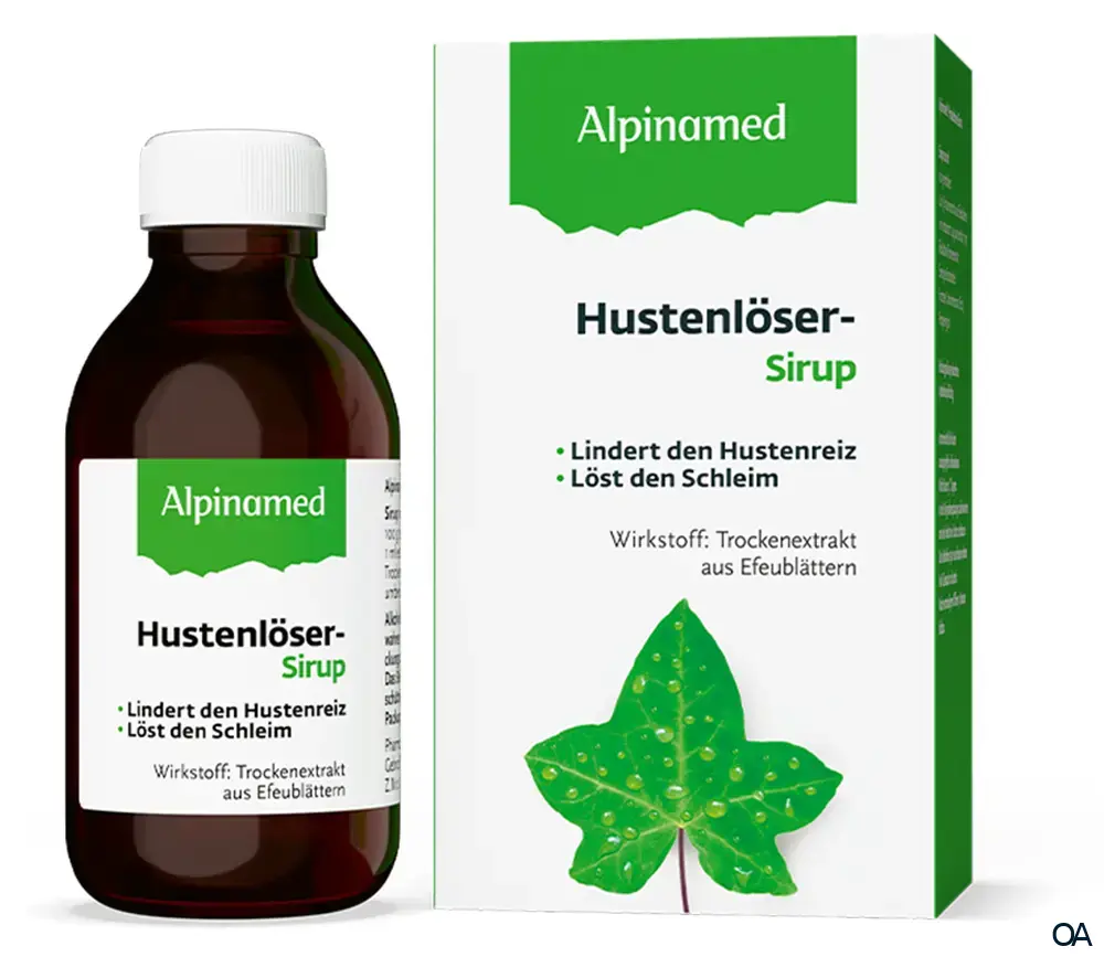 Alpinamed Hustenlöser – Sirup zum Einnehmen ist ein pflanzliches Arzneimittel zur Linderung des Hustens bei Katarrhen der Atemwege. Lindert den Hustenreiz und löst den Schleim. Der Wirkstoff dieses Arzneimittels ist ein Trockenextrakt aus Efeublättern.Alpinamed Hustenlöser – Sirup zum Einnehmen ist ein pflanzliches Arzneimittel zur Linderung des Hustens bei Katarrhen der Atemwege. Lindert den Hustenreiz und löst den Schleim.