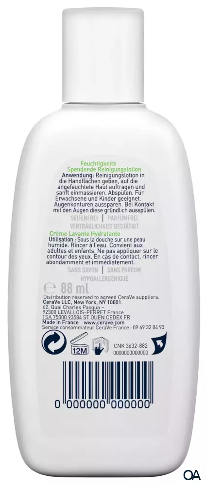 Die CeraVe Feuchtigkeitsspendende Reinigungslotion ist eine milde einigungslotion für Gesicht und Körper, die Schmutz und Fett sanft entfernt und gleichzeitig die Hautfeuchtigkeit erhält und die Hautschutzbarriere stärkt. Nicht schäumende Formel.Die CeraVe Feuchtigkeitsspendende Reinigungslotion ist eine milde einigungslotion für Gesicht und Körper, die Schmutz und Fett sanft entfernt und gleichzeitig die Hautfeuchtigkeit erhält und die Hautschutzbarriere stärkt. Nicht schäumende Formel.