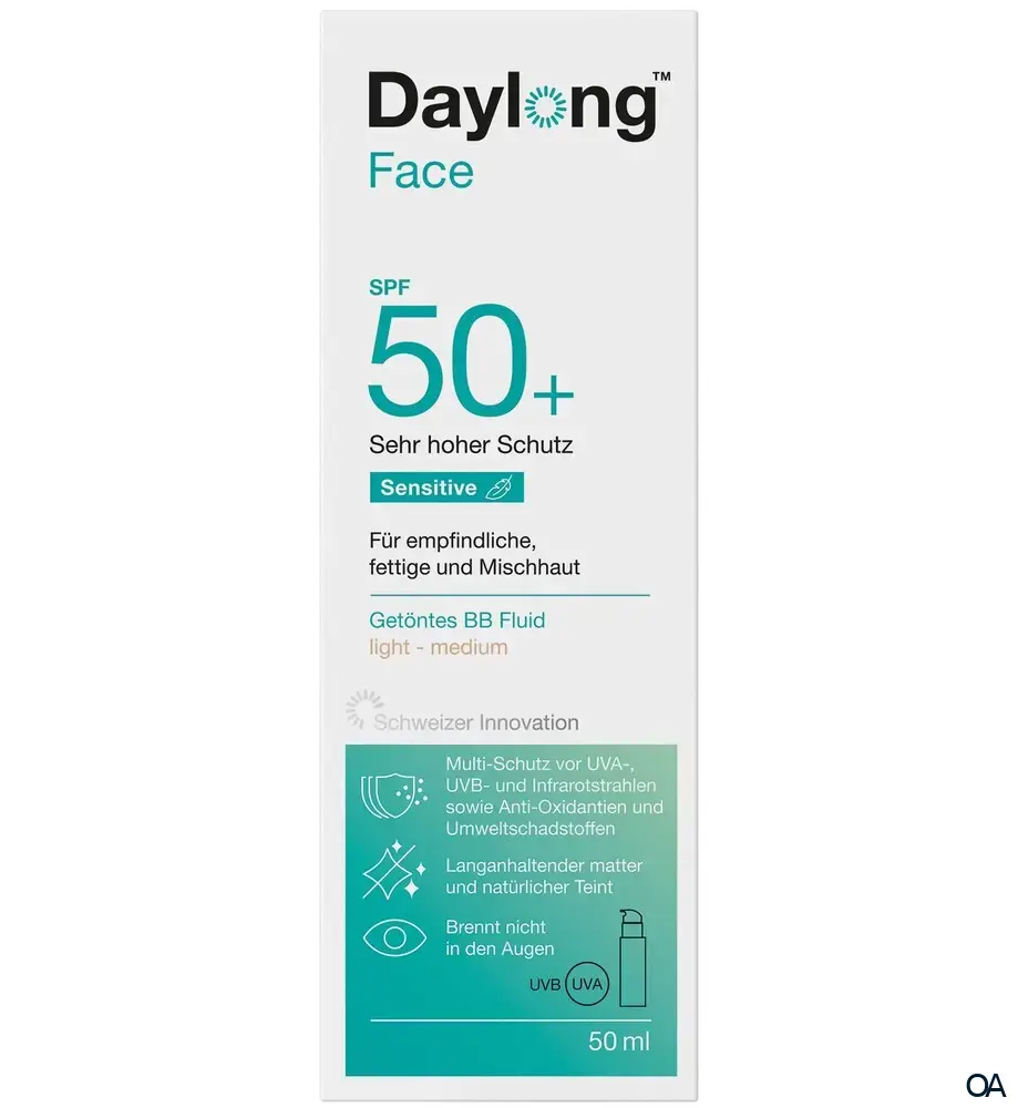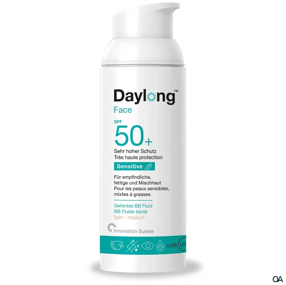 Daylong™ Sensitive Face getöntes BB Fluid SPF 50+ vereint natürliche Deckkraft mit hohem Sonnenschutz gegen UVA- und UVB Strahlung. Für einen ebenmäßigen, langanhaltenden, matten Teint und geschützte Haut.Daylong™ Sensitive Face getöntes BB Fluid SPF 50+ vereint natürliche Deckkraft mit hohem Sonnenschutz gegen UVA- und UVB Strahlung. Für einen ebenmäßigen, langanhaltenden, matten Teint und geschützte Haut.