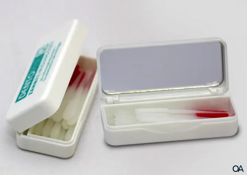 Das Set in der praktischen Klappbox mit 10 Microzahnbürsten und 5 elastischen Zahnreinigern hat in jeder Handtasche Platz. Klappboxmaße: 55 x 20 mm). Ein in der Klappbox integrierter Spiegel erleichtert Ihnen die „sichtbare“ Reinigung Ihrer Zähne.