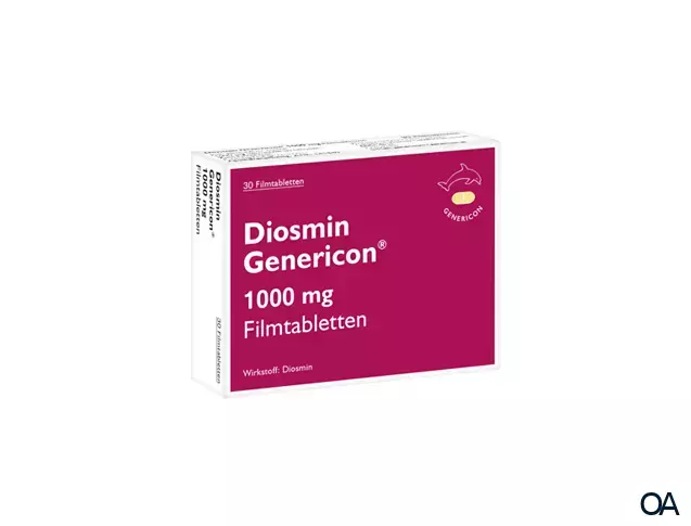Die Diosmin Genericon® 1000 mg Filmtabletten sind ein rezeptfreies Arzneimittel mit dem Wirkstoff: Diosmin. Es lindert Symptome eines chronischen Venenleidens der Beine und behandelt symptomatisch akute Hämorrhoidalbeschwerden.