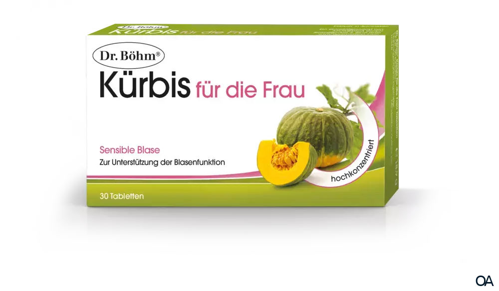 Dr. Böhm® Kürbis für die Frau Tabletten zur Unterstützung für eine sensible Blase und der Blasenfunktion. Hochkonzentrierter Kürbis-Extrakt zur Unterstützung der Blasenfunktion. Soja-Isoflavone unterstützen die weibliche Balance.Dr. Böhm® Kürbis für die Frau Tabletten zur Unterstützung für eine sensible Blase und der Blasenfunktion. Hochkonzentrierter Kürbis-Extrakt zur Unterstützung der Blasenfunktion. Soja-Isoflavone unterstützen die weibliche Balance.