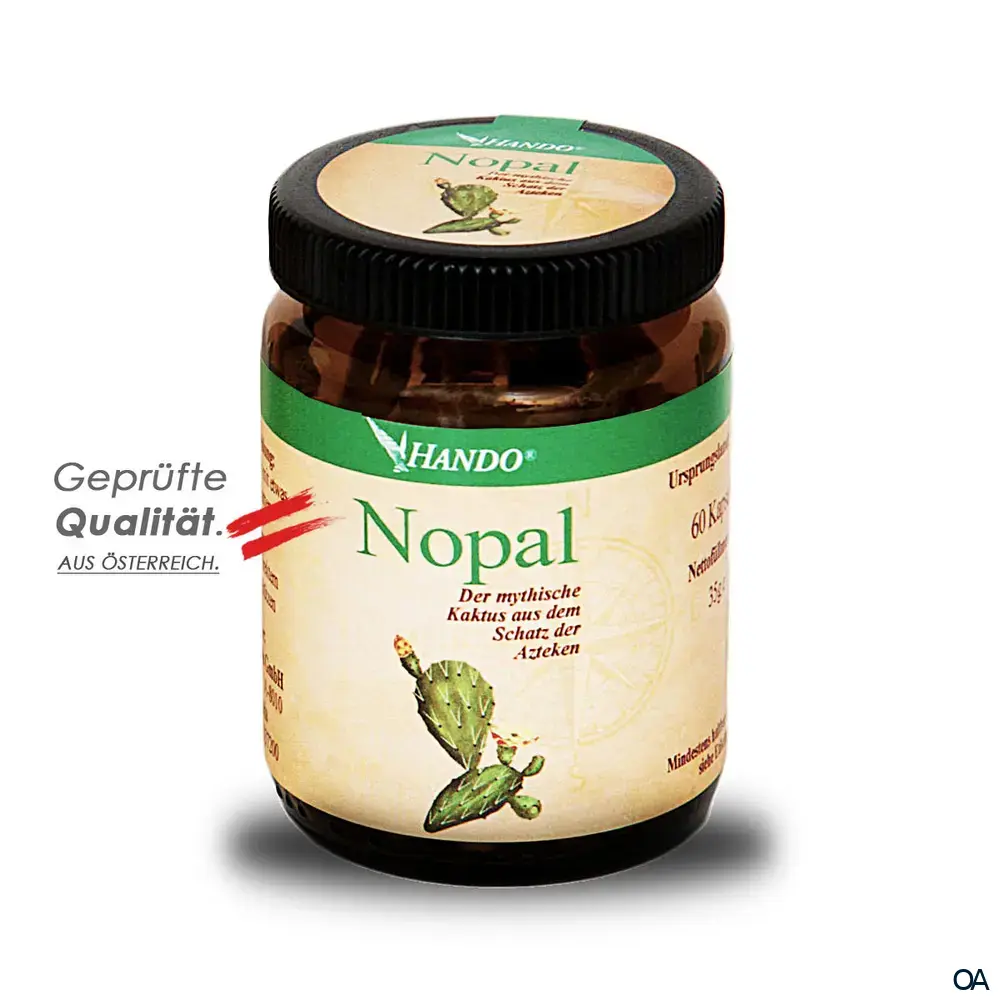 Die Hando Nopal Kapseln sind ein Nahrungsergänzungsmittel mit 500 mg Nopal-Pulver (Opuntia streptacantha) pro Kapsel. Der mythische Kaktus aus dem Schatz der Azteken.Die Hando Nopal Kapseln sind ein Nahrungsergänzungsmittel mit 500 mg Nopal-Pulver (Opuntia streptacantha) pro Kapsel. Der mythische Kaktus aus dem Schatz der Azteken.