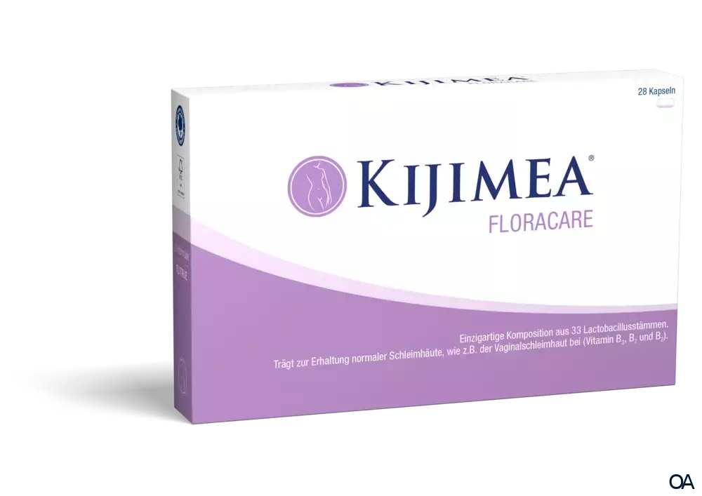 Kijimea® FloraCare ist ein Nahrungsgergänzungsmittel aus 33 speziell aufeinander abgestimmten Lactobacillusstämmen. Zusätzlich enthält es Vitamin B3, B7 und B2, die zur Erhaltung normaler Schleimhäute (z.B. der Vaginalschleimhaut) beitragen.