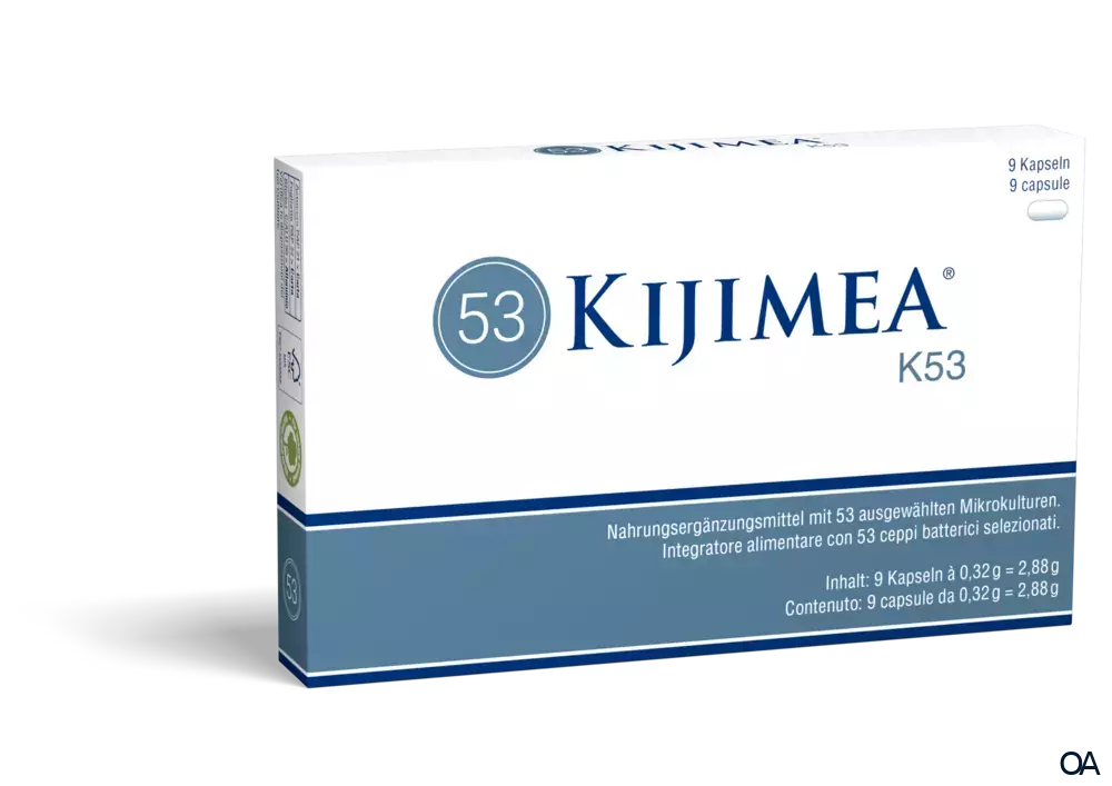 Kijimea® K53 ist ein Nahrungsergänzungsmittel, das 53 ausgewählte Mikrokulturenstämme enthält, die in der natürlichen Darmflora des Menschen vorkommen. Eine Portion Kijimea® K53 enthält mindestens 50 Milliarden lebensfähige Mikrokulturen.