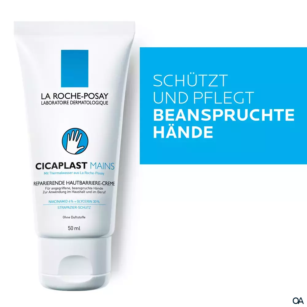 CICAPLAST MAINS reparierende Hautbarriere-Creme mit hautberuhigendem Thermalwasser aus La Roche-Posay, repariert durch Beruf und Haushalt beanspruchte Hände dank Niacinamide. Rötungen, Rauheit und Risse werden reduziert. Die angenehme Textur mit Ihren hohen Anteil an Glycerin baut eine schützende Barriere-Textur auf, welche auch nach dem Händewaschen resistent ist und ist vor externen Reizungen geschützt. Die Hände werden wieder geschmeidig. Zieht sofort ein, klebt nicht und hinterlässt keine Rückstände. Ideal für den Beruf geeignet.