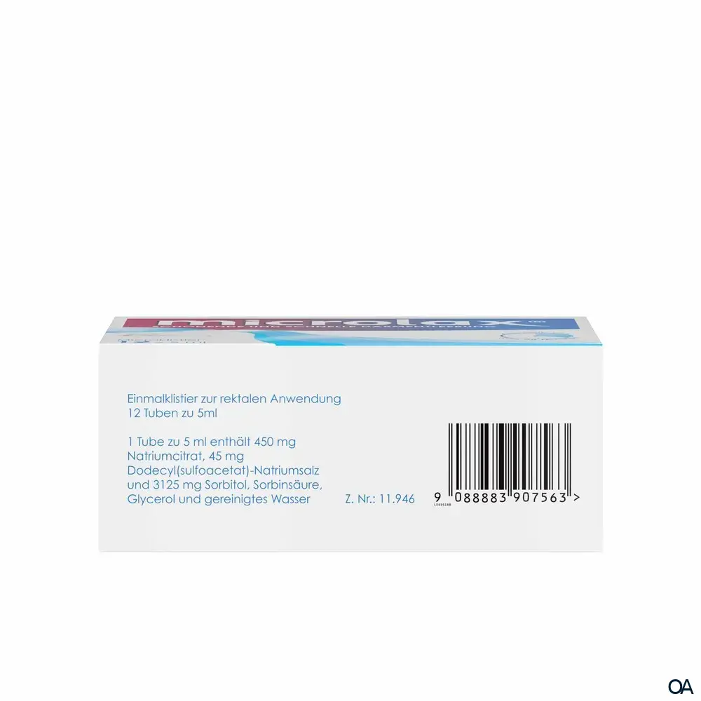 - Was Microlax enthält - Die Wirkstoffe sind: Natriumcitrat , Dodecyl(sulfoacetat)-Natriumsalz und Sorbitol. 1 Tube zu 5 ml enthält 450 mg Natriumcitrat, 45 mg Dodecyl(sulfoacetat)-Natriumsalz und 3125 mg Sorbitol.