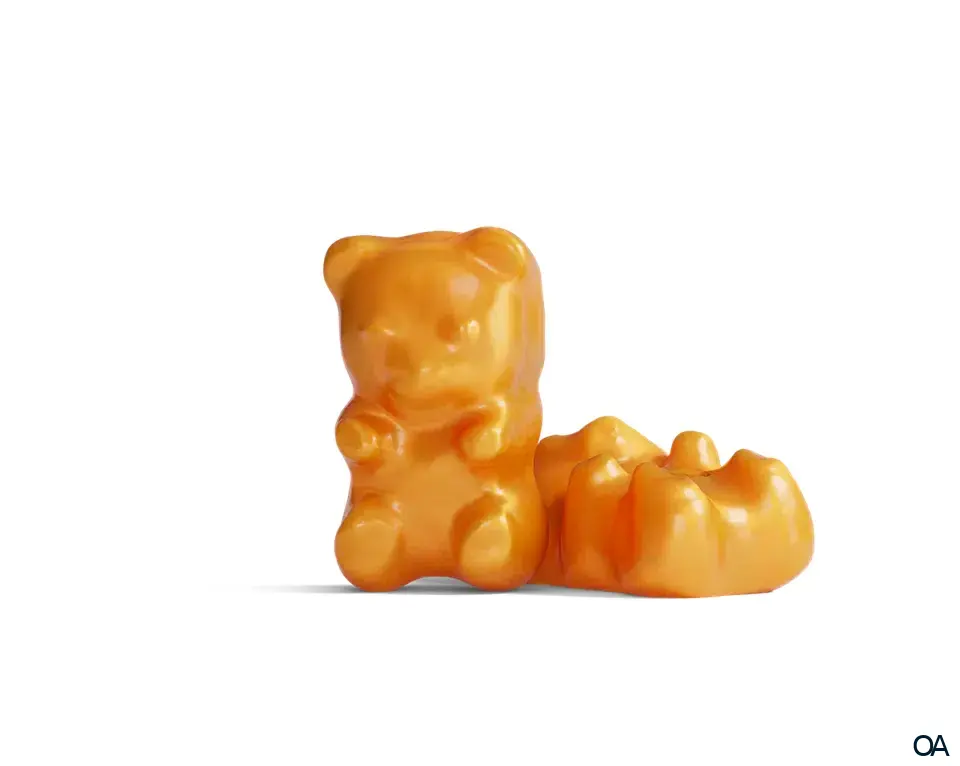 - Zutaten: Maltitsirup, Gelatine (Schwein), Säuerungsmittel: Citronensäure, Quinoa-Keimlingspulver, Zistrosenkrautextrakt, L-Ascorbinsäure, DL-α-Tocopherylacetat, β-Carotin, Zinkcitrat, Nicotinamid, Kaliumiodid, Calcium-D-pantothenat, Natriumselenat, Cholecalciferol, Retinylacetat, Mangansulfat, Cyanocobalamin, Thiaminmononitrat, Riboflavin, Pyridoxinhydrochlorid, Phyllochinon, Folsäure, Biotin, natürliches Orangenaroma, färbende Karotten-, Saflor- und Apfelkonzentrate, Überzugmittel: Carnaubawachs.