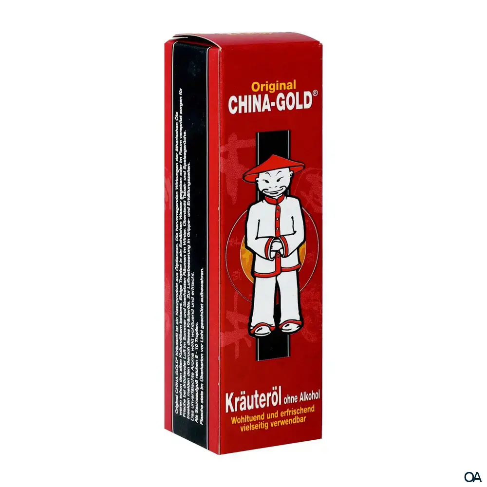 CHINA-GOLD Kräuteröl: Das vielseitige Öl auf Basis natürlicher Inhaltsstoffe sorgt für ein angenehmes Raumklima, überdeckt unangenehme Gerüche und wirkt entspannend. Ohne Alkohol.CHINA-GOLD Kräuteröl: Das vielseitige Öl auf Basis natürlicher Inhaltsstoffe sorgt für ein angenehmes Raumklima, überdeckt unangenehme Gerüche und wirkt entspannend. Ohne Alkohol.