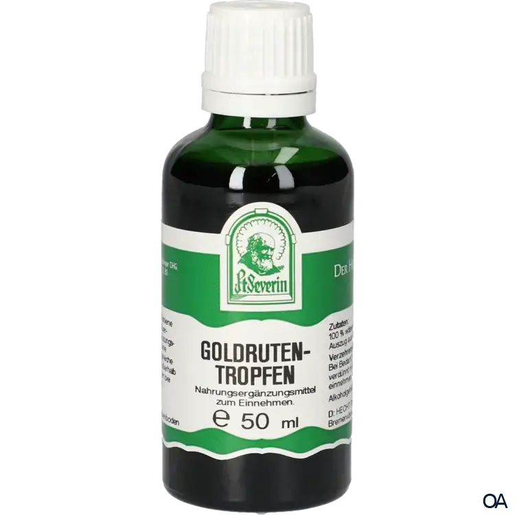 Pater Severin Goldruten TropfenDie echte Goldrute (Solidago virgaurea L.), gehört zu den Korbblütler (Asteraceae). Verwendet wird vorwiegend das Kraut der Pflanze. Zu den Inhaltsstoffen zählen unter anderem ätherisches Öl, Gerbstoff, Bitterstoffe, Saponine und Flavonoide, denen ein positiver Effekt bei Blasen- und Darmentzündungen, Entzündungen im Mund- und Rachenraum, bei Magenkrämpfen, bei Rheuma und Gicht aber auch bei Diabetes nachgesagt wird.