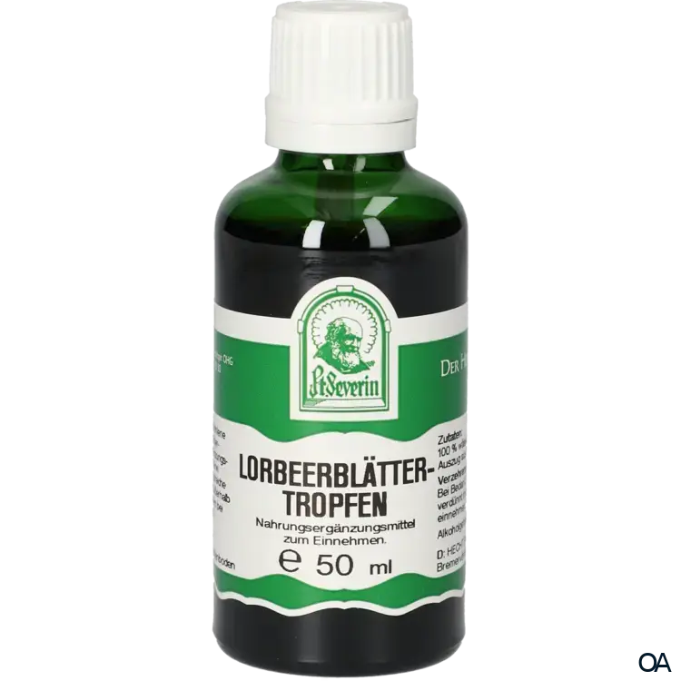 Die Pater Severin Lorbeerblätter Tropfen sind ein Nahrungsergänzungsmittel zum Einnehmen. Die Lorbeerblättertropfen enthalten einen hochwertigen wässrig/alkoholischen Auszug aus Lorbeerblättern.