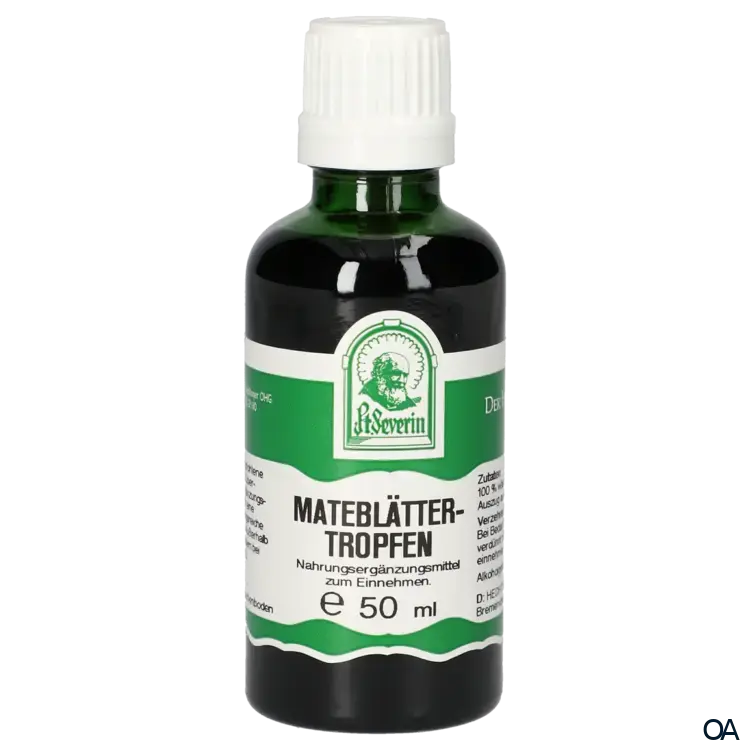 Die Pater Severin Mateblätter Tropfen sind ein Nahrungsergänzungsmittel zum Einnehmen. Die Mateblättertropfen enthalten einen hochwertigen wässrig/alkoholischen Auszug aus Mateblättern.Die Pater Severin Mateblätter Tropfen sind ein Nahrungsergänzungsmittel zum Einnehmen. Die Mateblättertropfen enthalten einen hochwertigen wässrig/alkoholischen Auszug aus Mateblättern.