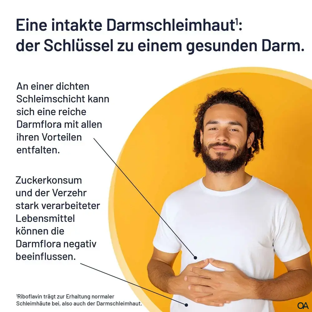 1) Riboflavin trägt zur Erhaltung normaler Schleimhäute bei, damit auch der Darmschleimhaut.