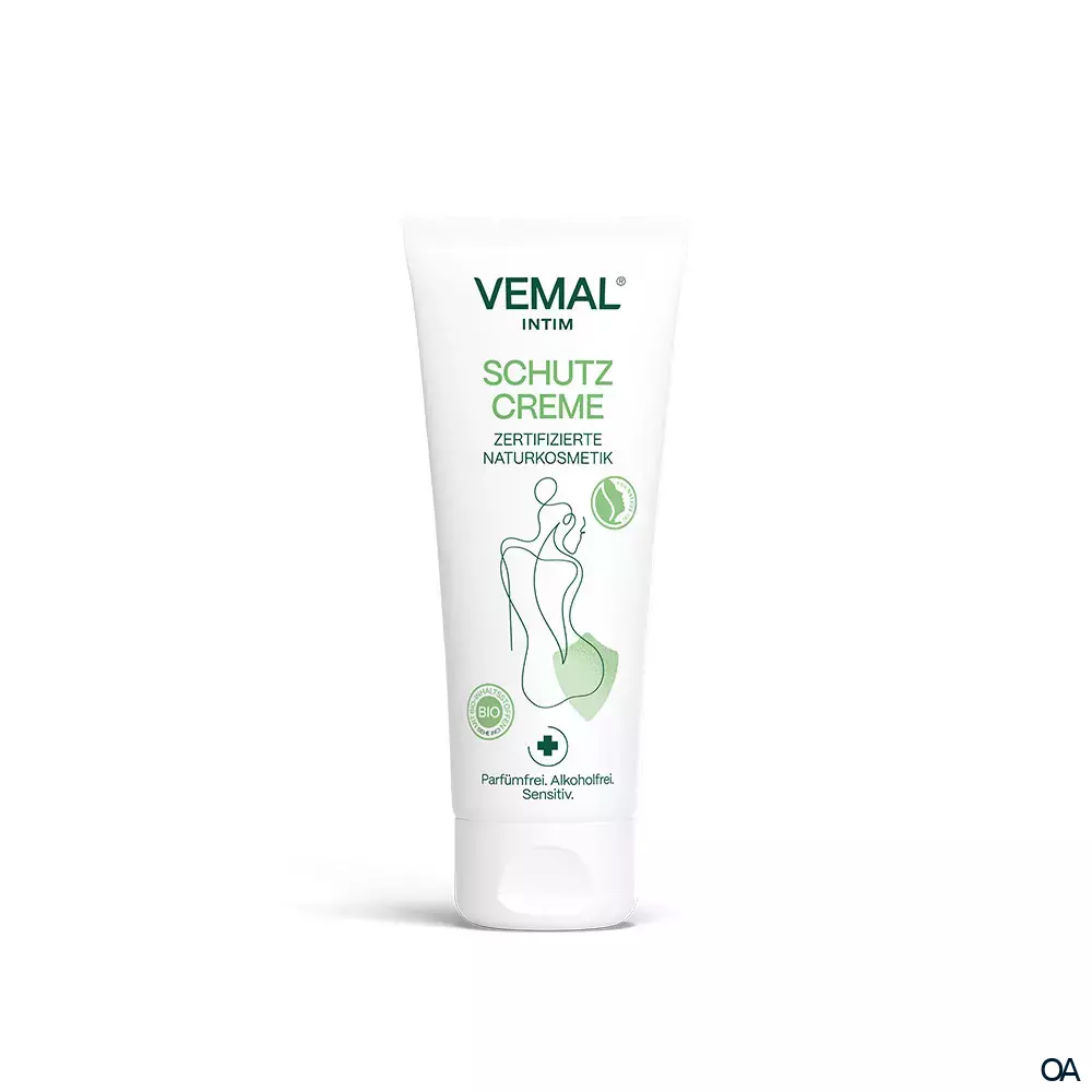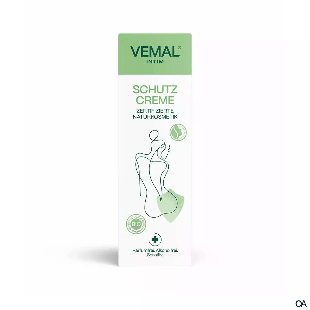 Anders als die Haut verfügt die Scheidenflora über keine schützende Hornschicht, so dass Seife, Parfüm und andere Chemikalien sie austrocknen und irritieren können. Die natürliche VEMAL Intim Schutzcreme auf Basis pflanzlicher Vaseline sorgt im empfindlichen Intimbereich für intensive Pflege und Schutz. Die parfüm- und alkoholfreie Rezeptur mit hohem Anteil an natürlichen Ölen beugt Wundsein und trockener Haut vor. Durch die wasserabweisende Formulierung kann sie vor Reizungen, Rötungen und Rissen bei Kontakt mit Chlor- und Salzwasser schützen.