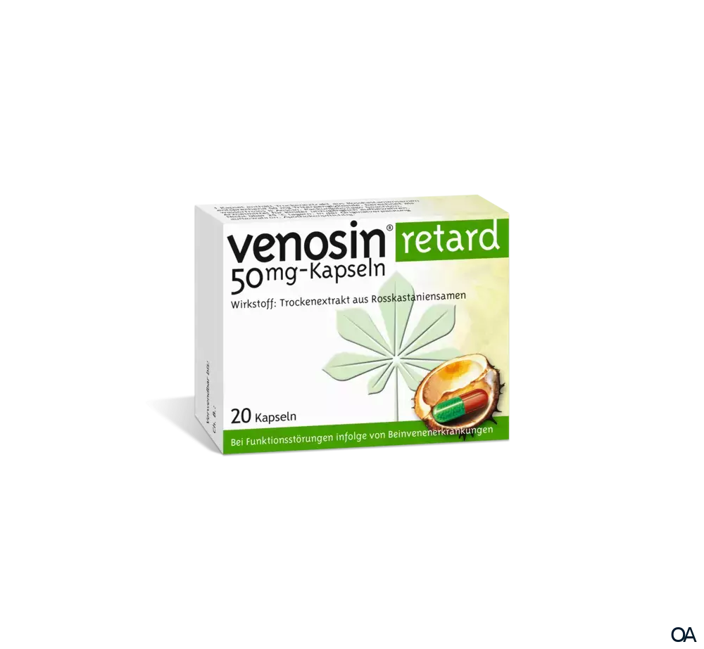Venosin retard 50 mg Kapseln sind ein Arzneimittel und wirkt mit dem natürlichen Wirkstoff des Rosskastaniensamenextrakts Ödemen (Flüssigkeitsansammlungen im Körpergewebe) entgegen.Venosin retard 50 mg Kapseln sind ein Arzneimittel und wirkt mit dem natürlichen Wirkstoff des Rosskastaniensamenextrakts Ödemen (Flüssigkeitsansammlungen im Körpergewebe) entgegen.