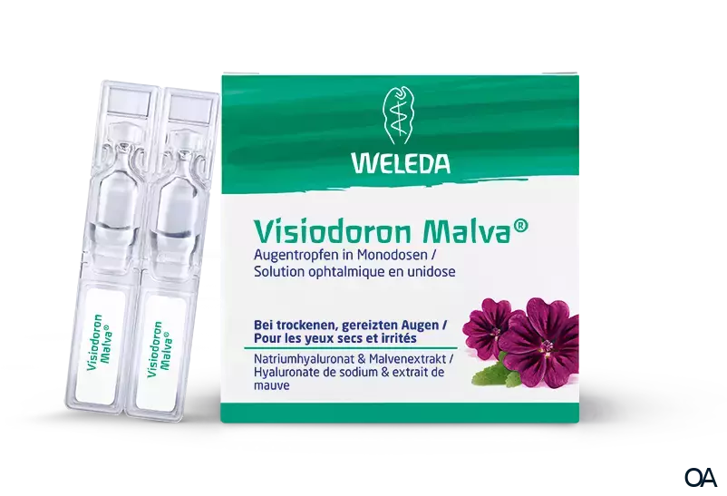Visiodoron Malva® ist eine sterile Augentropfenlösung in Monodosen zur Linderung von Beschwerden bei trockenen und gereizten Augen. Die Weleda spezifische Kombination aus biologischem Malvenextrakt (beruhigt und spendet zusätzliche Feuchtigkeit) und gentechnikfreiem Natriumhyaluronat (stabilisiert den Tränenfilm) befeuchtet und beruhigt trockene, gereizte Augen.