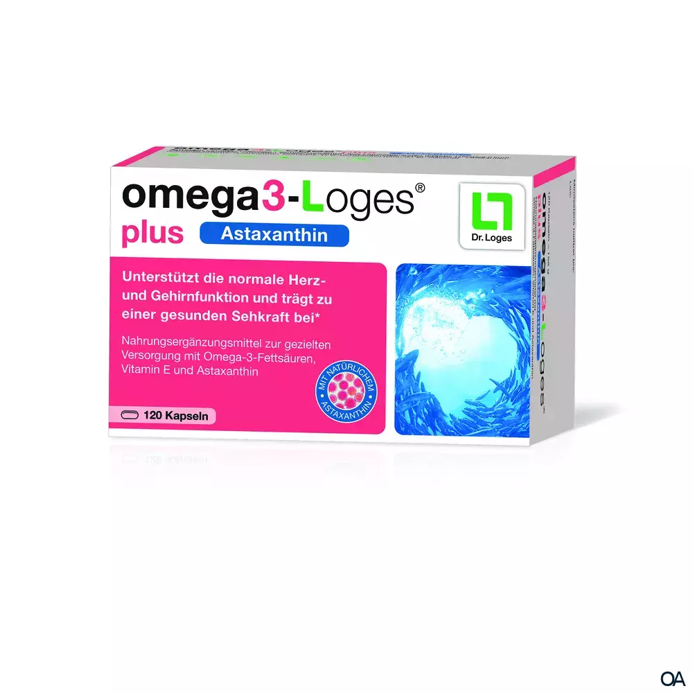 omega3-Loges® plus Astaxanthin Kapseln sind ein Nahrungsergänzungsmittel zur gezielten Versorgung mit Omega-3-Fettsäuren, Vitamin E und Astaxanthin. Unterstützt die normale Herz- und Gehirnfunktion und trägt zu einer gesunden Sehkraft bei.
