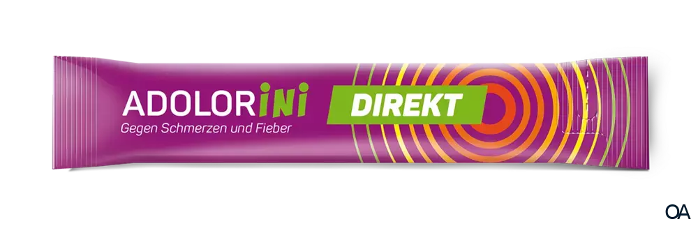 - Den Inhalt eines Beutels ADOLORINI DIREKT 200 mg Suspension zum Einnehmen direkt in den Mund drücken und bei Bedarf ein Glas Wasser nachtrinken.