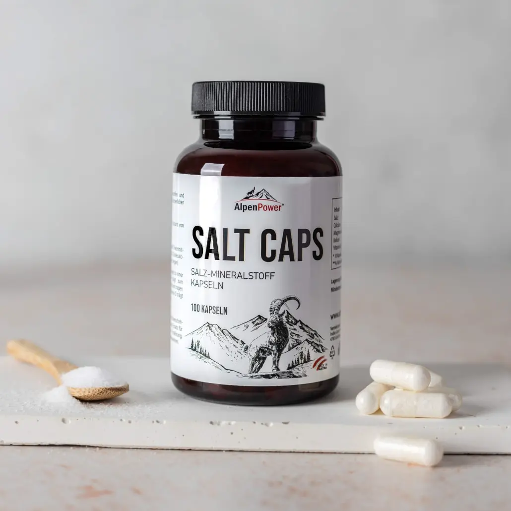 Entdecke die AlpenPower SalzCaps: Hochwertige Elektrolyt-Kapseln mit Salz, Calcium, Magnesium, Kalium und Vitamin D3. Vegan, glutenfrei und ideal gegen Muskelkrämpfe bei intensiver Belastung.AlpenPower® SaltCaps – Effektiver Elektrolytausgleich für Ausdauersportler