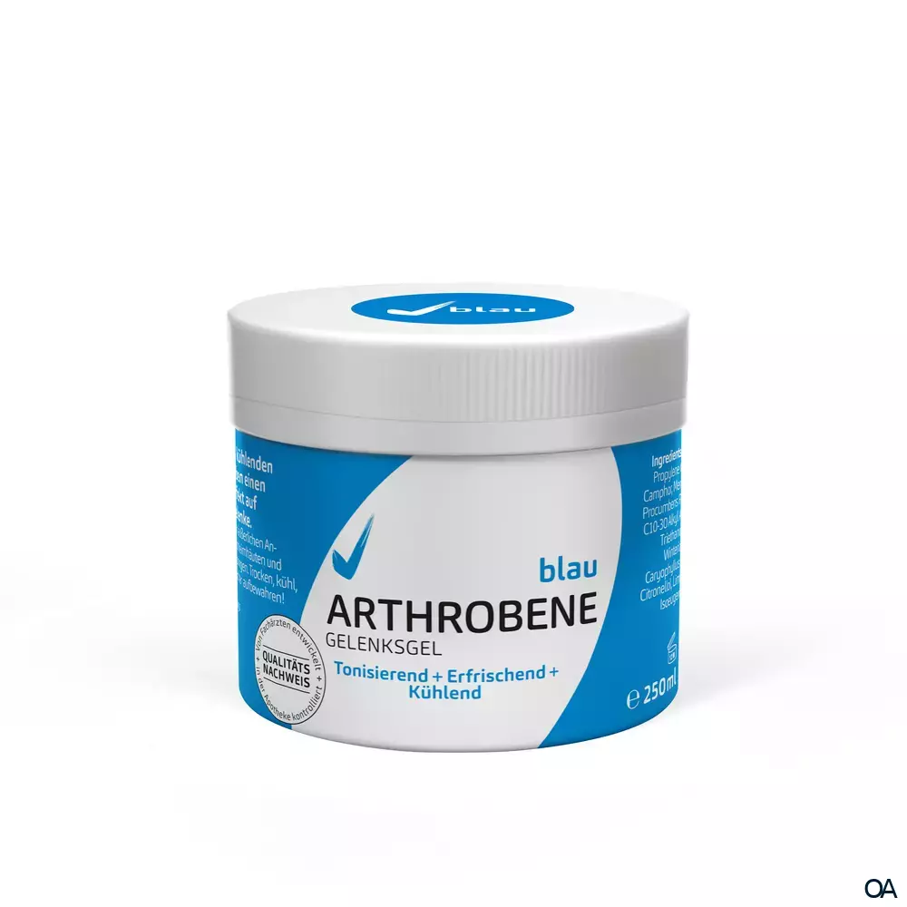 Tonisierend. Erfrischend. Kühlend. Wohltuend für Muskeln und Gelenke.Arthrobene Gelenksgel blau beruhigt gereizte Gelenke, Sehnenscheiden und Schleimbeutel. Diese Eigenschaft beruht auf dem aktiven Abtransport von schädigenden Stoffwechselprodukten aus dem Gewebe. Die pflanzlich-ätherischen Naturstoffe werden von der Haut rasch aufgenommen und lösen auch eine maßvolle Kühlung über einen längeren Zeitraum aus.