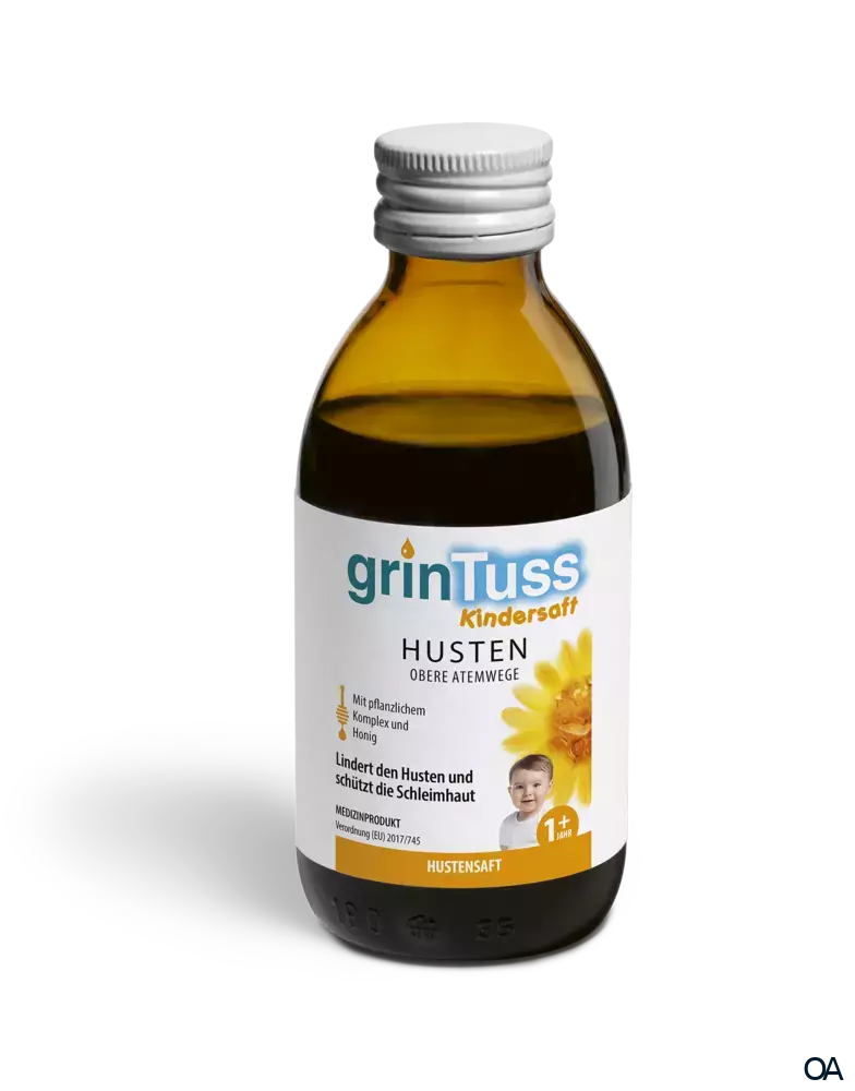 Grintuss Hustensaft für Kinder ab einem Jahr ist ein Hustensaft auf der Basis von Honig und Molekülkomplexen aus Grindelie, Spitzwegerich und Strohblume. Beruhigt den Husten, indem es die Schleimhaut schützt. 100% natürliche Inhaltsstoffe.
