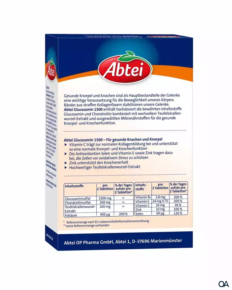 Produktinformationen "Abtei Glucosamin 1500 Plus Teufelskralle Tabletten"