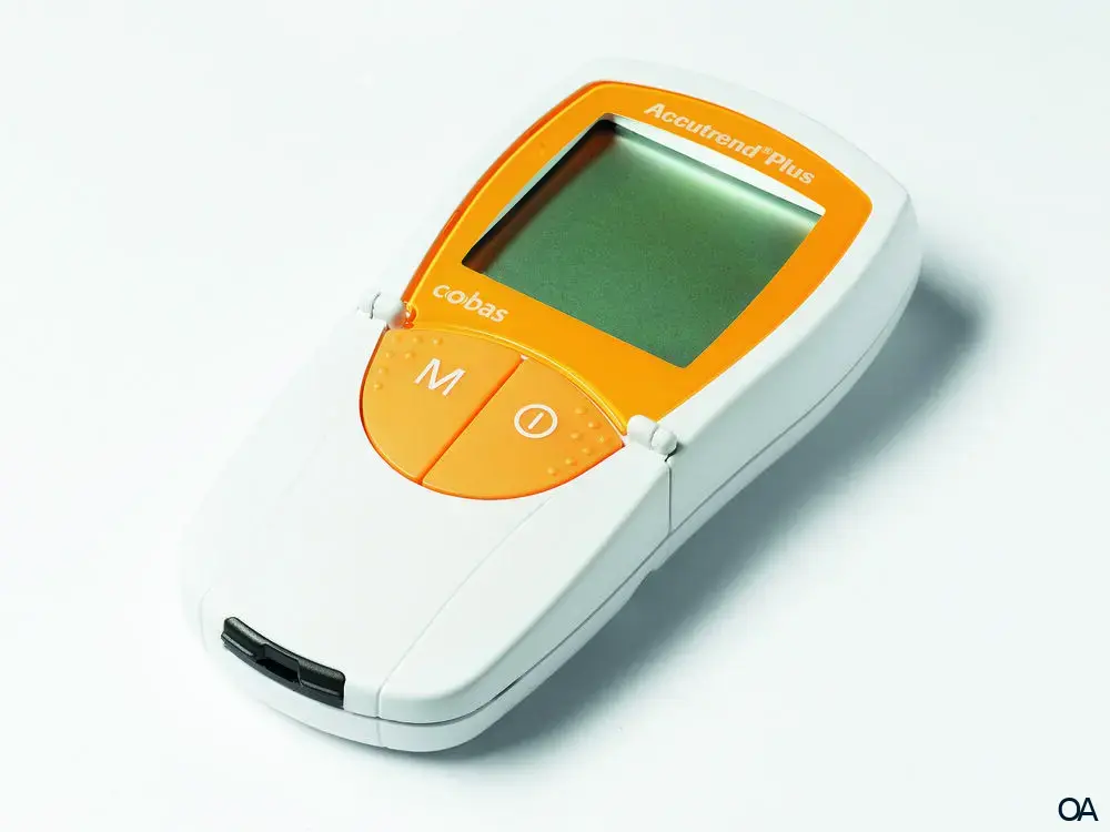 Accutrend® Plus ist ein flexibles Point-of-Care-Handgerät für die Bestimmung von drei wichtigen kardiometabolischen Parametern und des Lactatspiegels. Das System ist für die Verwendung in Arztpraxis und Klinik, sowie für die Selbstkontrolle* zu Hause unter ärztlicher Überwachung und beim Sport vorgesehen. Die Messung erfordert nur eine geringe Menge Kapillarblut.