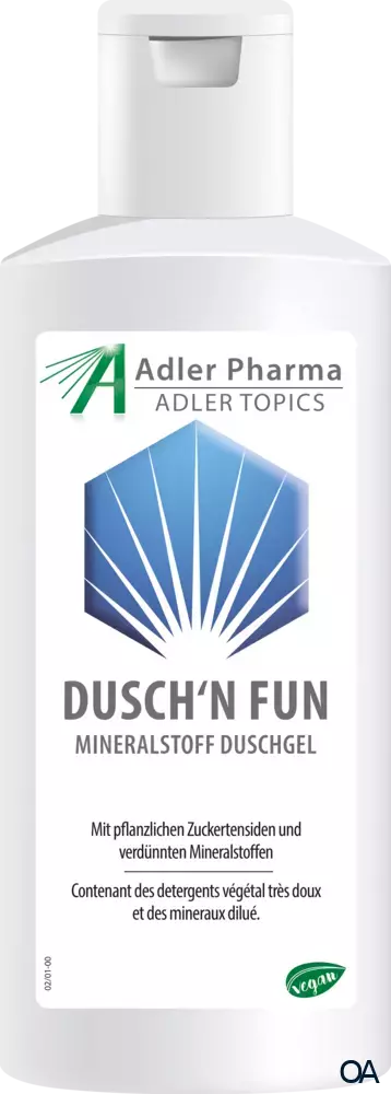 Das Adler Topics Dusch' n Fun ist ein Duschgel mit milden pflanzlichen Zuckertensiden (Kokosglucoside) und hochverdünnten Mineralstoffen. Bestens zur täglichen Dusche und Haarpflege geeignet.Das Adler Topics Dusch' n Fun ist ein Duschgel mit milden pflanzlichen Zuckertensiden (Kokosglucoside) und hochverdünnten Mineralstoffen. Bestens zur täglichen Dusche und Haarpflege geeignet.