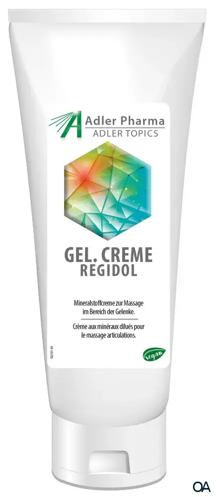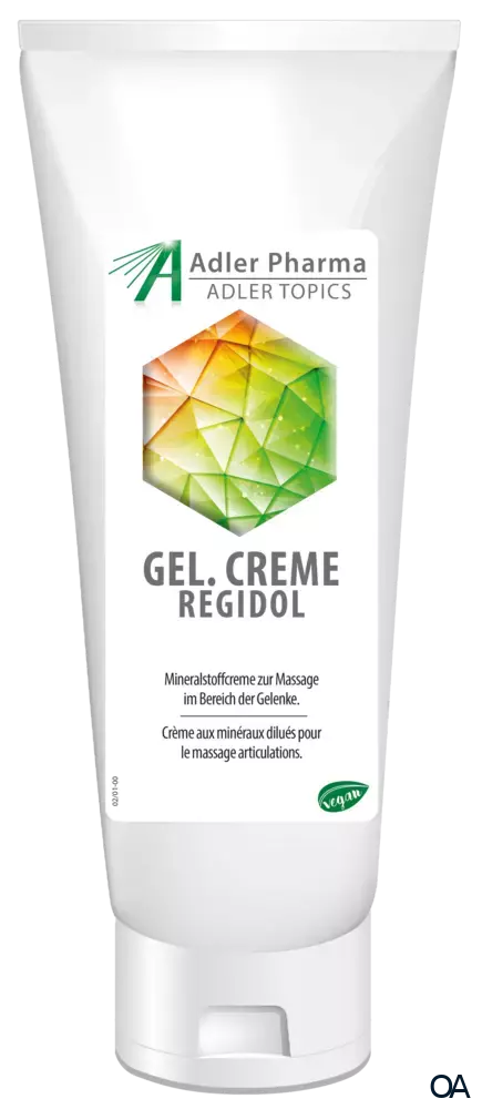 Die Adler Topics Gel.Creme Regidol ist eine Mineralstoffcreme zur Massage im Bereich der Gelenke.Die Adler Topics Gel.Creme Regidol ist eine Mineralstoffcreme zur Massage im Bereich der Gelenke.
