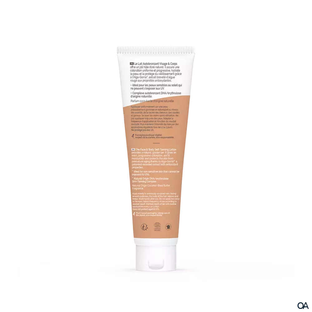 Die selbstbräunende Gesichts- und Körpermilch schenkt eine schöne goldene Bräune, strahelnd und natürlich. Sie sorgt für eine gleichmäßige und stufenlose Färbung, spendet der Haut Feuchtigkeit und schützt sie vorvorzeitiger Hautalterung dank Alga-Gorria®, einem patentierten Extrakt aus Rotalgen mit antioxidativen Eigenschaften.