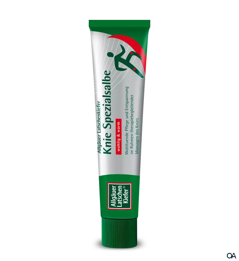 Die Allgäuer Latschenkiefer® Knie Spezialsalbe spendet eine wohltuende Pflege und Entspannung im Rahmen therapiebegleitender Massagen des Knies.Allgäuer Latschenkiefer Knie Spezialsalbe von Allgäuer Latschenkiefer pflegt und entspannt strapazierte Knie wohltuend im Rahmen einer Massage. Zusammen mit der Allgäuer Wärmeformel, Original Allgäuer Latschenkiefernöl, pflegendem Panthenol und Allantoin bewirkt das Produkt durch Unterstützung der Massage angenehme Erleichterung.