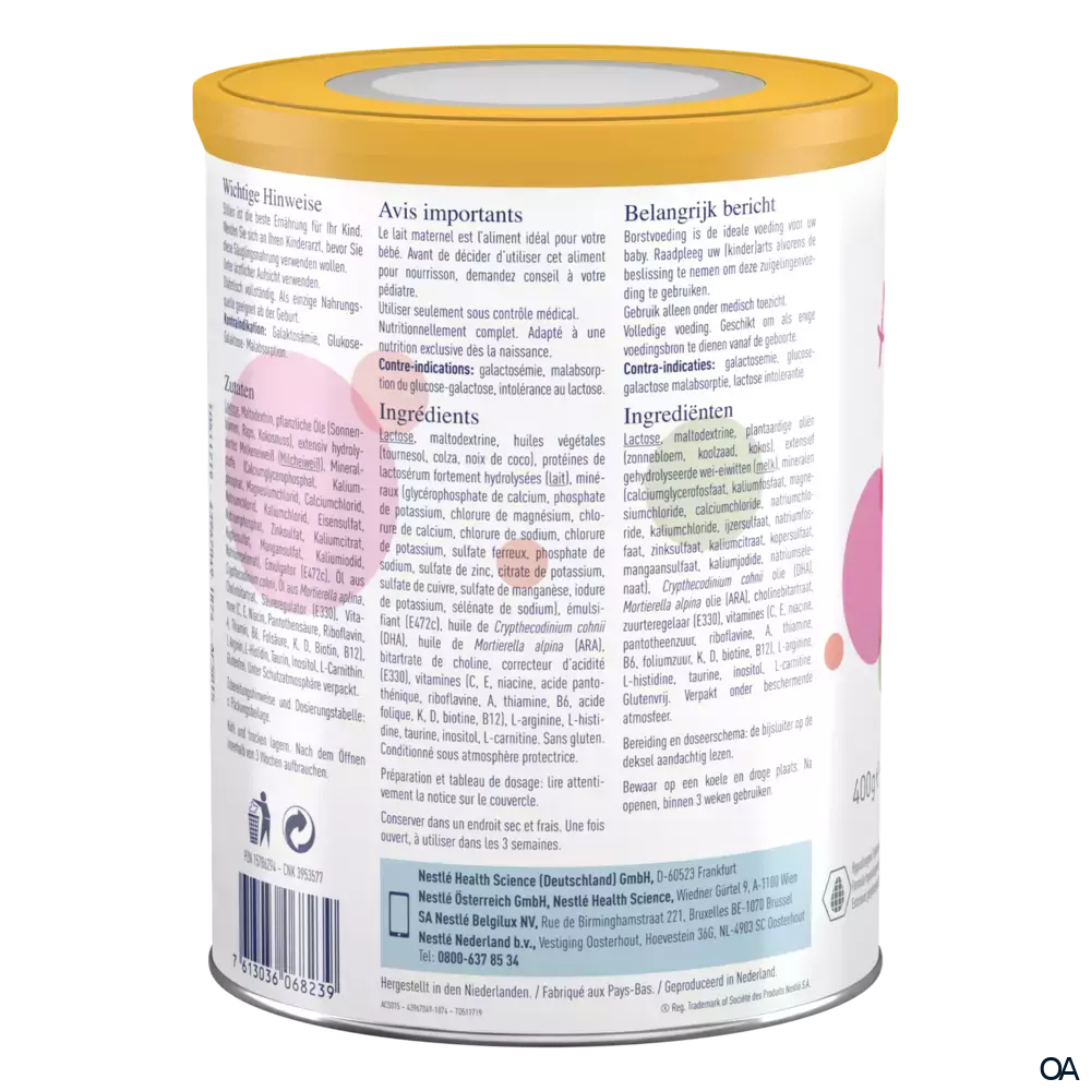Althéra® - Hypoallergene Spezialnahrung bei Nahrungsmittelallergien oder nahrungssensitiver atopischer Dermatitis.Produktvorteile: Stark hydrolysiertes Eiweiß mit reduzierter Allergenität (eHF) Angenehmer Geschmack Mit LC-PUFA Zur ausschließlichen Ernährung von Geburt an Lactosegehalt 29 g/100 g Bei folgenden Anwendungsgebieten wird Althéra® empfohlen: Nahrungsmittelallergien (Kuhmilcheiweiß-, Sojaeiweißallergie u.a.) Nahrungssensitive atopische Dermatitis Diagnostische Suchdiät