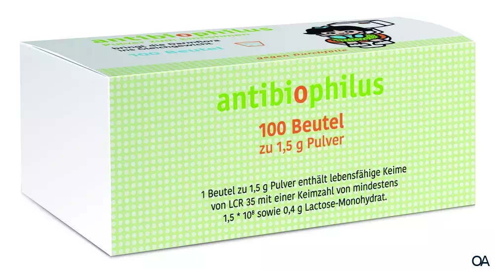 Als probiotisches hochqualitatives Arzneimittel dient Antibiophilus zur Behandlung von Durchfällen, die durch Viren und auch Bakterien verursacht werden. Auch Durchfälle hervorgerufen durch die Einnahme von Antibiotika und Strahlentherapie können verhindert oder gemildert werden. Die Wirkungen werden in zahlreichen Studien belegt. Das Produkt kann bei Raumtemperatur gelagert werden und ist somit der ideale Reisebegleiter für die ganze Familie. Beutel und Kapseln stehen zur Auswahl.