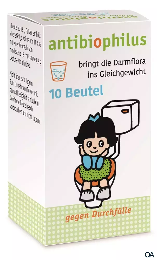 Als probiotisches hochqualitatives Arzneimittel dient Antibiophilus zur Behandlung von Durchfällen, die durch Viren und auch Bakterien verursacht werden. Auch Durchfälle hervorgerufen durch die Einnahme von Antibiotika und Strahlentherapie können verhindert oder gemildert werden. Die Wirkungen werden in zahlreichen Studien belegt. Das Produkt kann bei Raumtemperatur gelagert werden und ist somit der ideale Reisebegleiter für die ganze Familie. Beutel und Kapseln stehen zur Auswahl.