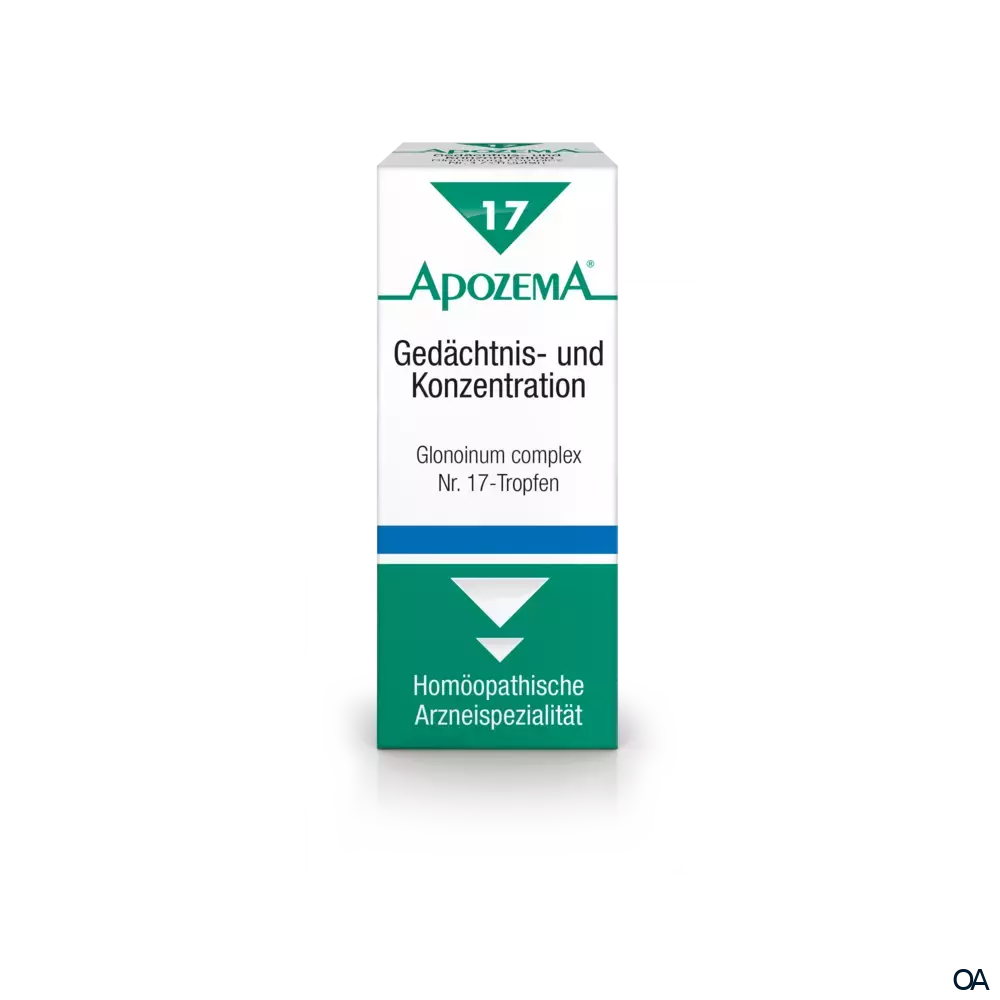 Die Apozema® Gedächtnis- und Konzentration Glonoinum complex Nr. 17 Tropfen sind eine homöopathische Arzneispezialität zur Einnahme bei Gedächtnis- und Konzentrationsschwäche, sowie Vergesslichkeit und Nachlassen der kognitiven Leistungsfähigkeit.Die Apozema® Gedächtnis- und Konzentration Glonoinum complex Nr. 17 Tropfen sind eine homöopathische Arzneispezialität zur Einnahme bei Gedächtnis- und Konzentrationsschwäche, sowie Vergesslichkeit und Nachlassen der kognitiven Leistungsfähigkeit.