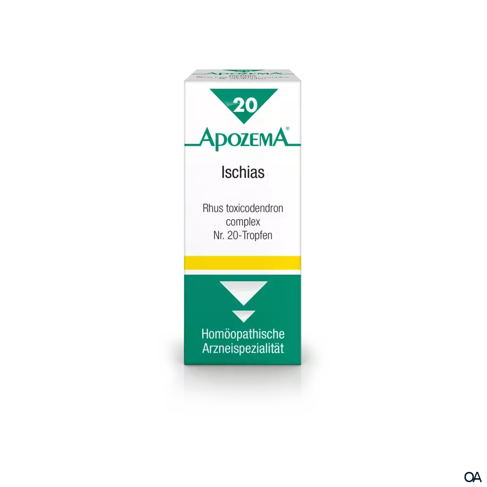 Die Apozema® Ischias Rhus toxicodendron complex Nr. 20 Tropfen sind eine homöopathische Arzneispezialität zur Einnahme bei Ischiasschmerzen, rheumatischen Gelenks- und Muskelschmerzen, sowie bei Kreuz- und Nervenschmerzen.Die Apozema® Ischias Rhus toxicodendron complex Nr. 20 Tropfen sind eine homöopathische Arzneispezialität zur Einnahme bei Ischiasschmerzen, rheumatischen Gelenks- und Muskelschmerzen, sowie bei Kreuz- und Nervenschmerzen.