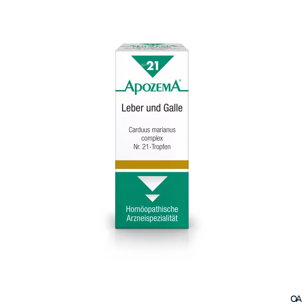 Die Apozema® Leber und Galle Carduus marianus complex Nr.21-Tropfen sind eine homöopathische Arzneispezialität zur Milderung der Folgen von Funktionsstörungen von Leber und Galle, so wie Verdauungsstörungen, Blähungen und Völlegefühl.Die Apozema® Leber und Galle Carduus marianus complex Nr.21-Tropfen sind eine homöopathische Arzneispezialität zur Milderung der Folgen von Funktionsstörungen von Leber und Galle, so wie Verdauungsstörungen, Blähungen und Völlegefühl.