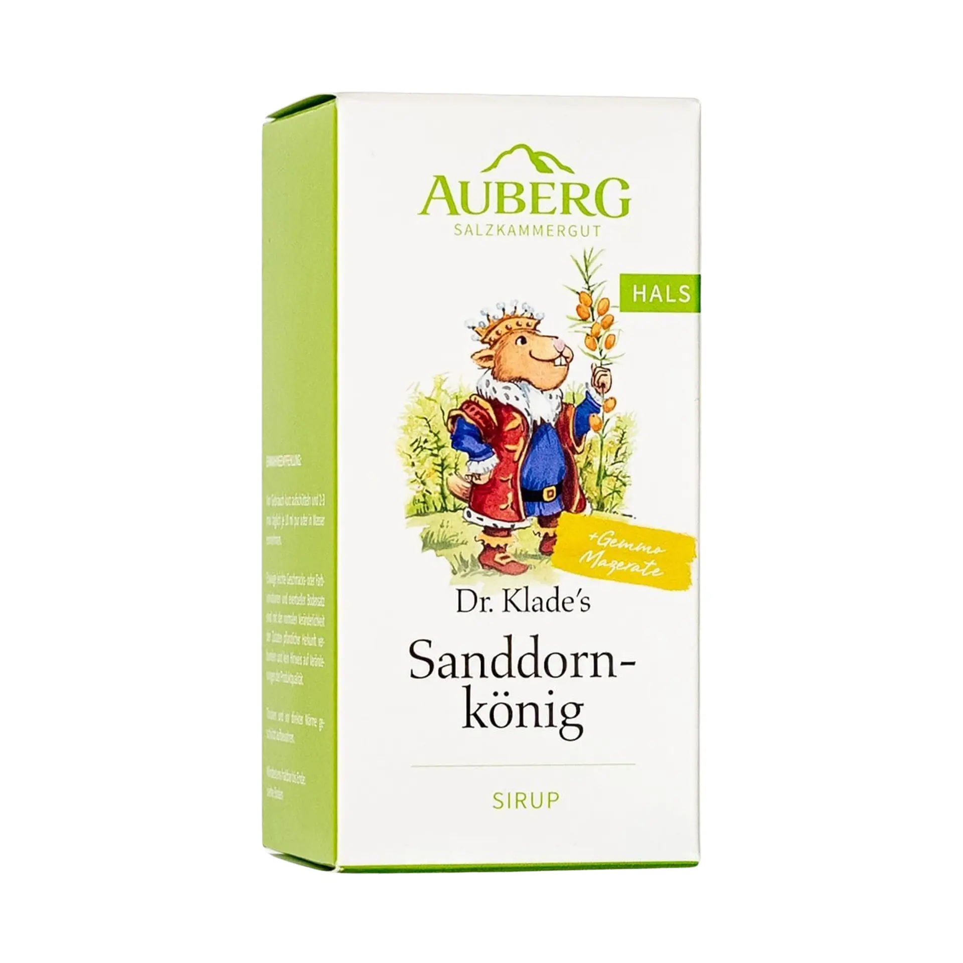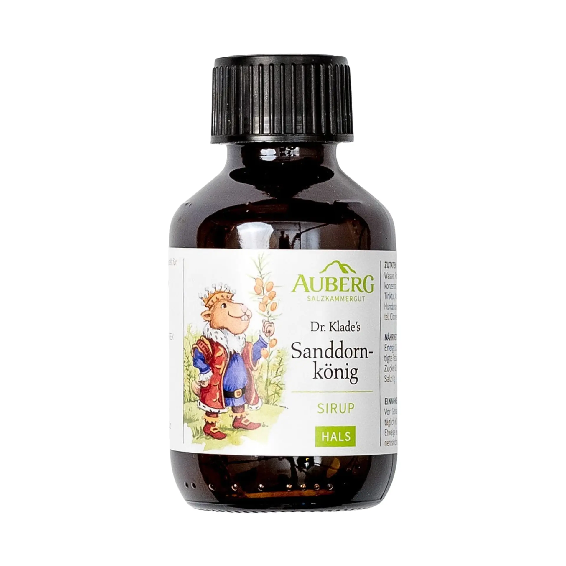 Der Sanddornkönig Sirup mit 100% natürlichen Pflanzenauszügen aus Moorbirke, Salbei und Propolis unterstützt sanft bei Halskratzen. Empfohlen ab 1 Jahr.Sanddornkönig Sirup