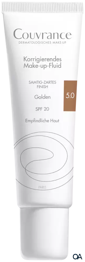 Avène Couvrance korrigierendes Make-up Fluid 5.0 Golden SPF 20 - Korrigiert leichte Hautunregelmäßigkeiten und verleiht Ihnen einen ebenmäßigen Hautton.Das Couvrance korrigierende Make-up-Fluid bietet eine optimale Abdeckung bei leichten Hautunregelmäßigkeiten. Es lässt sich sehr leicht verteilen und schützt mit Lichtschutzfaktor 20 vor den negativen Einflüssen der Sonne. Der innovativer, lichtkorrigierender Komplex gleicht Hautunregelmäßigkeiten aus und verleiht einen gleichmäßigen, natürlichen und strahlenden Teint. Die angenehme, nicht fettende Textur hinterlässt ein samtig-zartes Finish auf der Haut.
