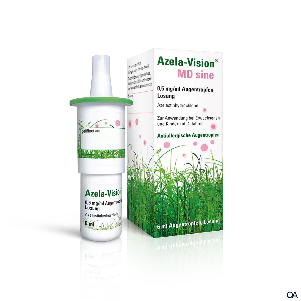 Azela-Vision® MD sine Augentropfen - Augentropfen zur Behandlung und Vorbeugung der Symptome der nicht-saisonalen allergischen Konjunktivitis bei Erwachsenen und Kindern ab 12 Jahren.Azela-Vision® MD sine enthält Azelastin, ein Arzneimittel aus der Gruppe der sogenannten Antihistaminika. Die Wirkungsweise von Antihistaminika besteht im Schutz vor den Wirkungen von Substanzen wie Histamin, die der Körper bei einer allergischen Reaktion produziert. Azelastin hat sich auch als wirksam zur Linderung von Augenentzündungen erwiesen.