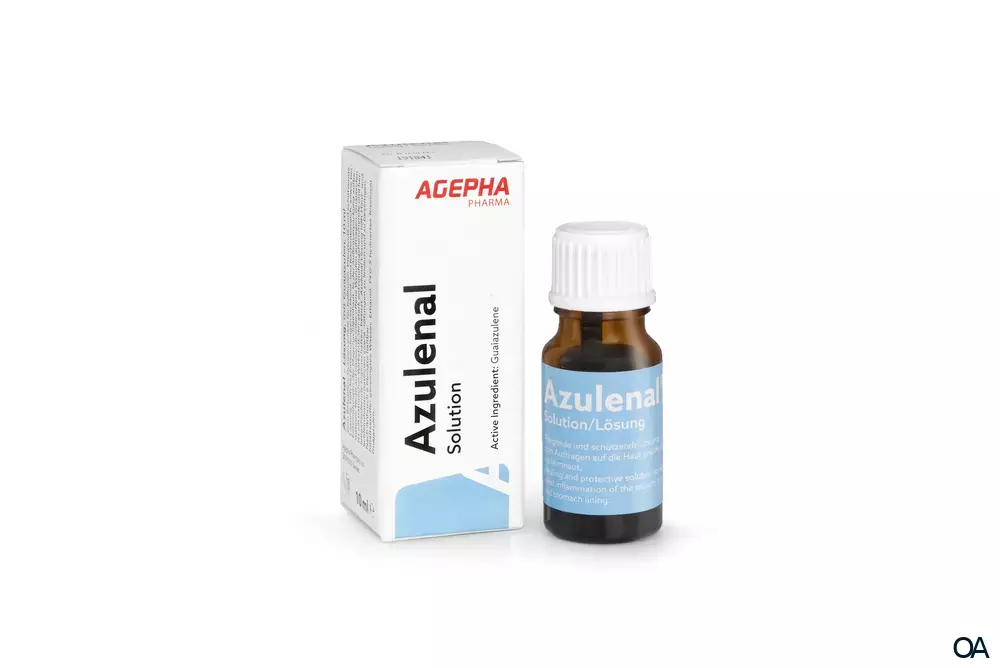 Azulenal Lösung hilft bei akuter und chronischer Schleimhautentzündung des Magens, bei Magen- und Zwölffingerdarmgeschwür. Zur besseren Magenverträglichkeit bei Medikation von p-Aminosalicylsäure (PAS)- und Sulfonamid-Präparaten, Harnblasenentzündung und Harnblasenneurose, Dickdarmentzündung, Entzündung der Schleimhäute des Mundes (Zahnfleischentzündung), der Nase und des Rachenraumes (Mandelentzündung), der Nebenhöhlen, des Ohres (Mittelohrentzündung). Entzündete und eiternde Wunden der äußeren Haut. Bei allergischen Entzündungen wie Heuschnupfen zur Schleimhautabschwellung, entzündlich-allergischen Hauterkrankungen, usw., Rollkur.