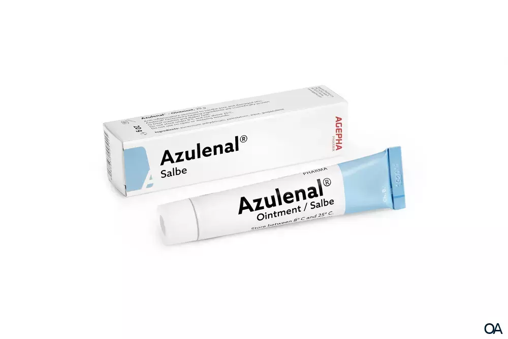 Azulenal® Salbe hilft bei Entzündungen der Haut und der Schleimhäute, sie schützt die Haut und hält sie geschmeidig. Azulenal®-Salbe enthält reinstes Guajazulen. Die fette Salbengrundlage haftet gut auf der Haut und ist sehr gut verträglich, da keine Konservierungsstoffe zugemischt werden. Guajazulen dringt gut in die Haut ein.
