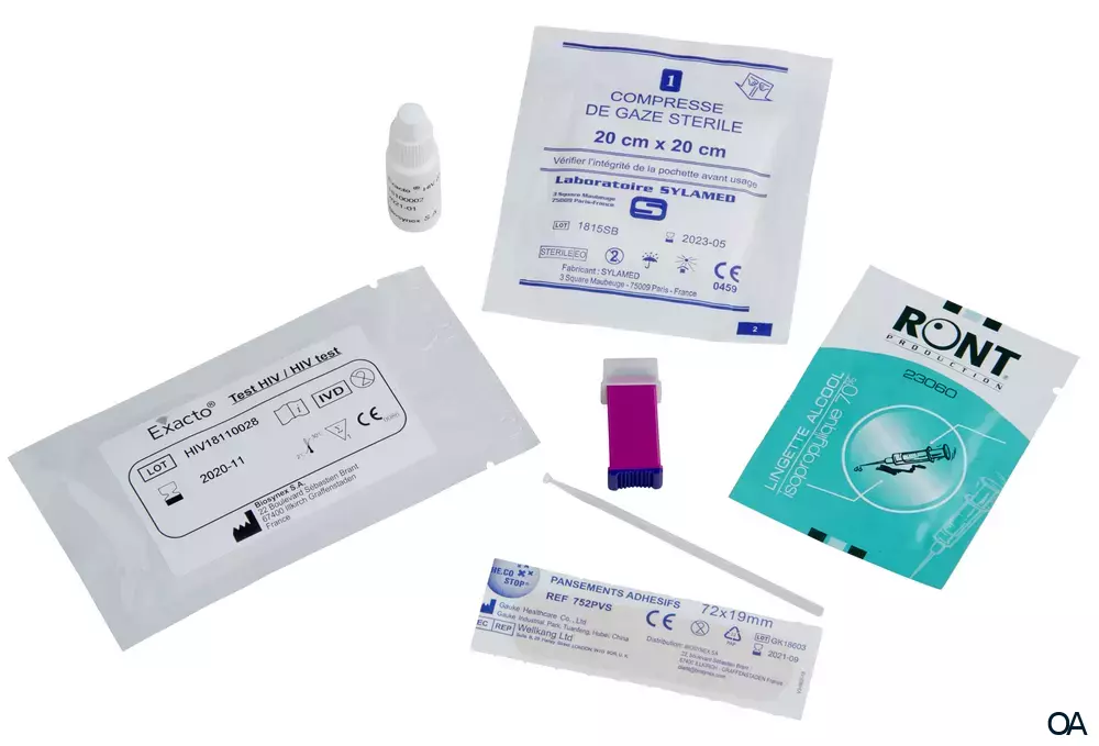 Der Test enthält Antigene, durch die Antikörper nachgewiesen werden können, die gegen das für AIDS verantwortliche Virus gerichtet sind (HIV-1 oder HIV-2). Um ein zuverlässiges Ergebnis zu erhalten, muss er mindestens drei Monate nach dem letzten Risikokontakt angewendet werden.