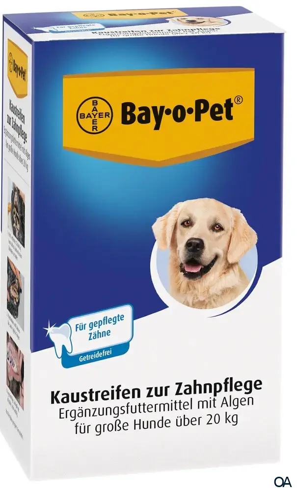 Die Bay-o-Pet® Zahnpflege Kaustreifen mit Algen für große Hunde über 20 kg sind ein Ergänzungsfuttermittel für Hunde, zur sanften Reinigung der Zähne und Schutz vor Karies und Parodontose.Die Bay-o-Pet® Zahnpflege Kaustreifen mit Algen für große Hunde über 20 kg sind ein Ergänzungsfuttermittel für Hunde, zur sanften Reinigung der Zähne und Schutz vor Karies und Parodontose.